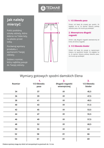 Spodnie damskie z uszyte z dekatyzowanej tkaniny bawełnianej z dodatkiem elastycznych włókien. Dzięki temu są wygodne w noszeniu i nie krępują ruchów podczas wykonywania obowiązków. Dodatkowo, wyróżniają się trwałym kolorem. Przechowywanie akcesoriów ułatwiają kieszenie skośne z przodu i kieszenie naszywane z tyłu.