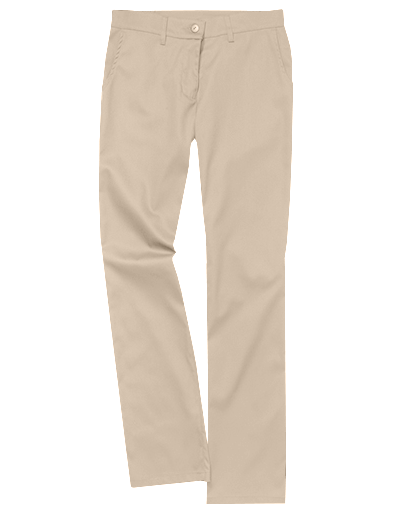 Spodnie damskie o prostym kroju, zapinane na suwak i oferujące możliwość dołączenia ulubionego paska dzięki szlufkom. Dwie kieszenie skośne z przodu oraz dwie kieszenie z tyłu umożliwiają przechowywanie akcesoriów. Tkanina mieszana jest wygodna w noszeniu i łatwa w pielęgnacji. Wyróżnia się także trwałym kolorem i wytrzymałością. Spodnie posiadają również wstawki w pasie dla maksymalnego komfortu noszenia i optymalnego dopasowania.
