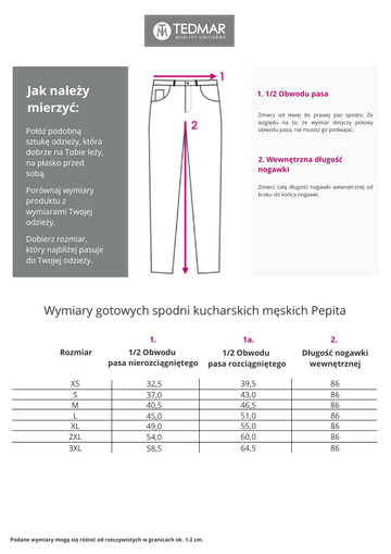 Spodnie kucharskie męskie Pepita
