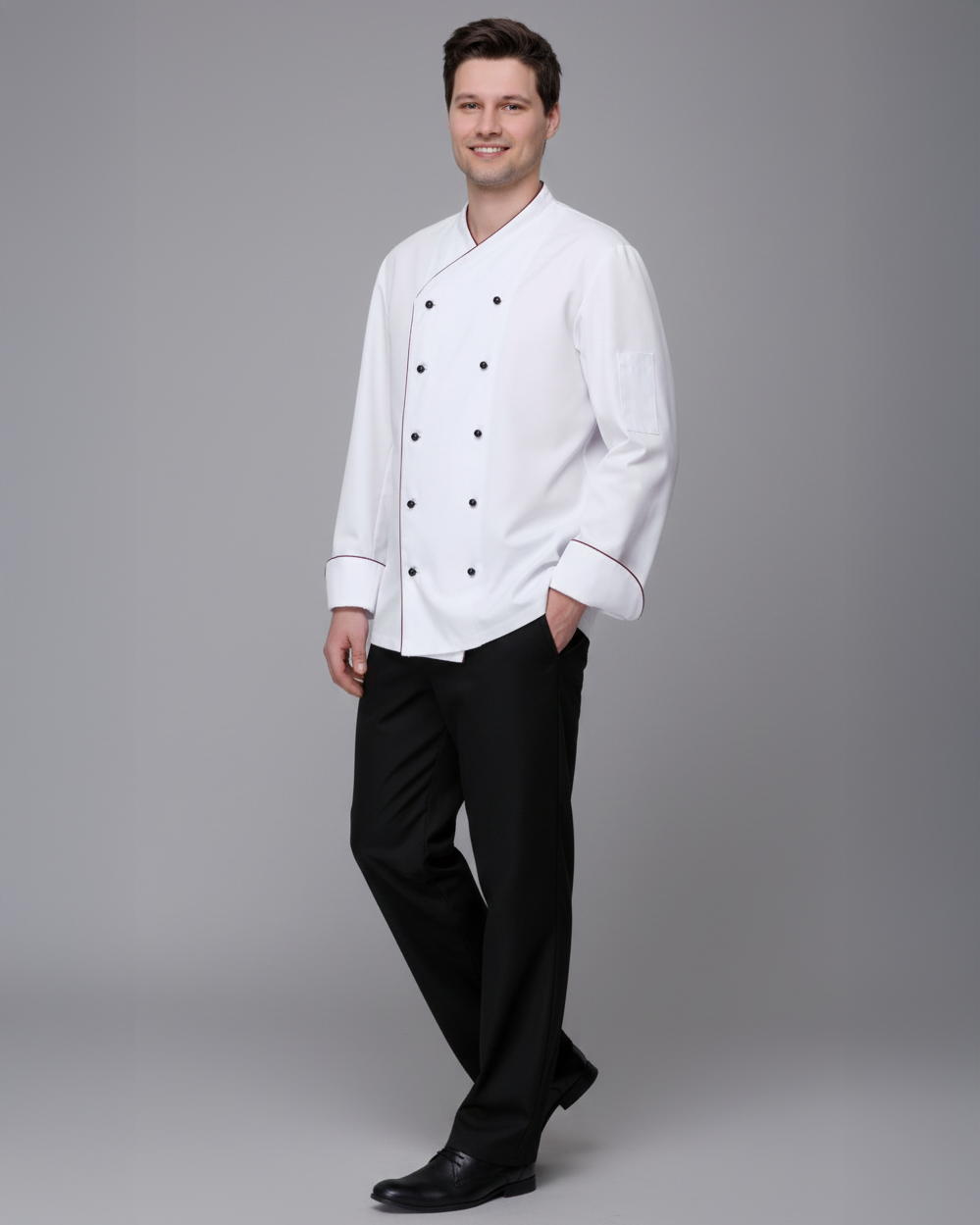 Wygodne spodnie męskie (dawniej Wojtek) z elastycznym pasem w gumkę i troczkami do indywidualnego dopasowania. Dwie kieszenie skośne oferują miejsce na akcesoria, a lekko prosta nogawka pasuje do każdej męskiej sylwetki.
