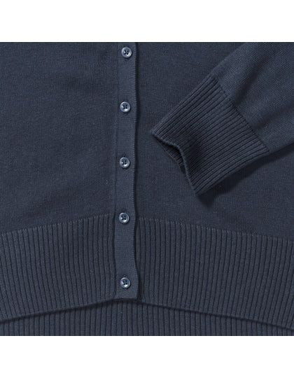 Wygodny kardigan z ciepłej dzianiny mieszanej bawełniano-akrylowej. Posiada dekolt w serek, zapięcie na guziki oraz ściągacze w mankietach i na biodrach. Łatwy w pielęgnacji i szybkoschnący.