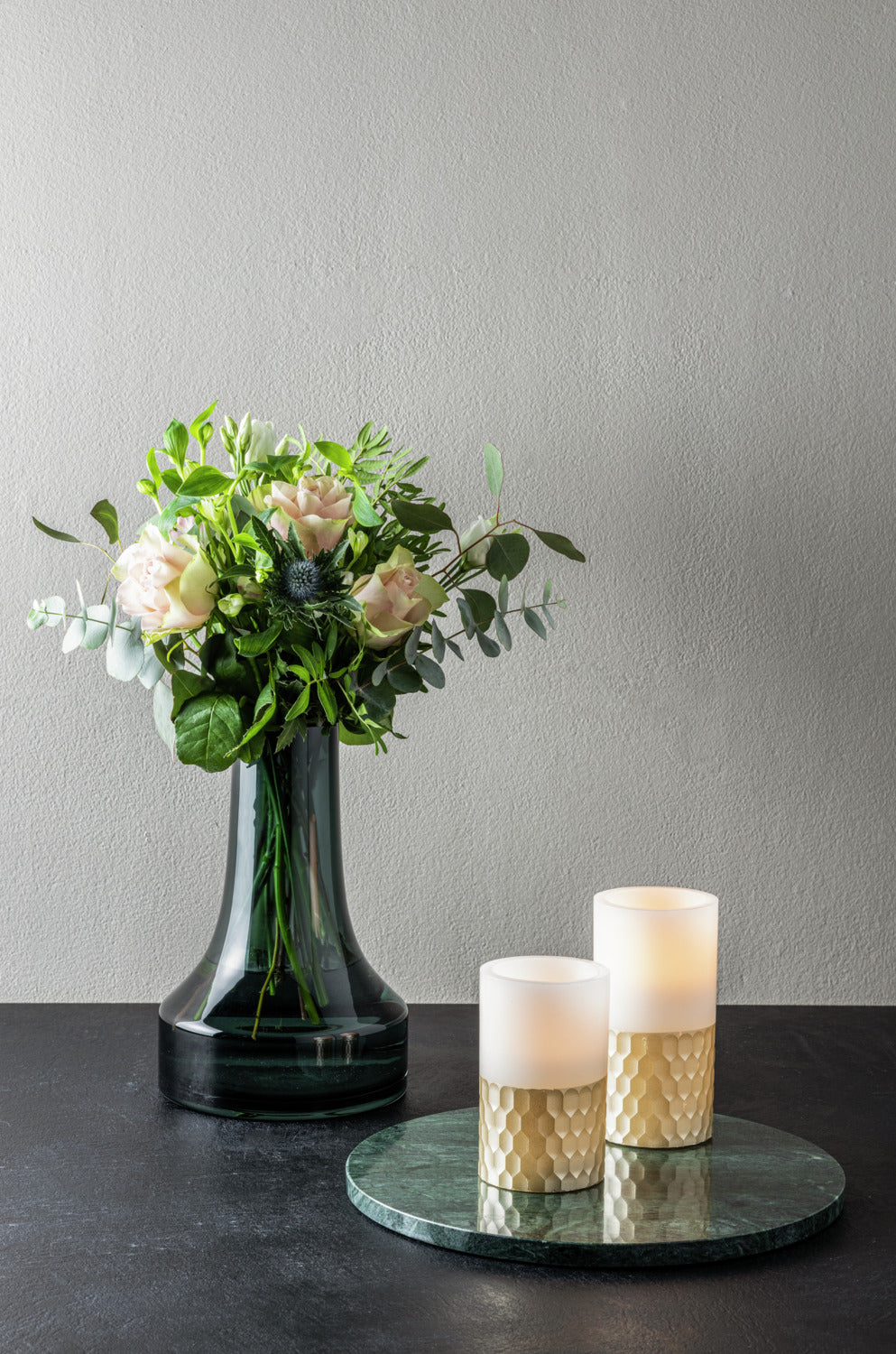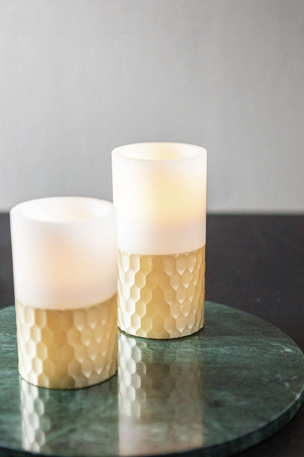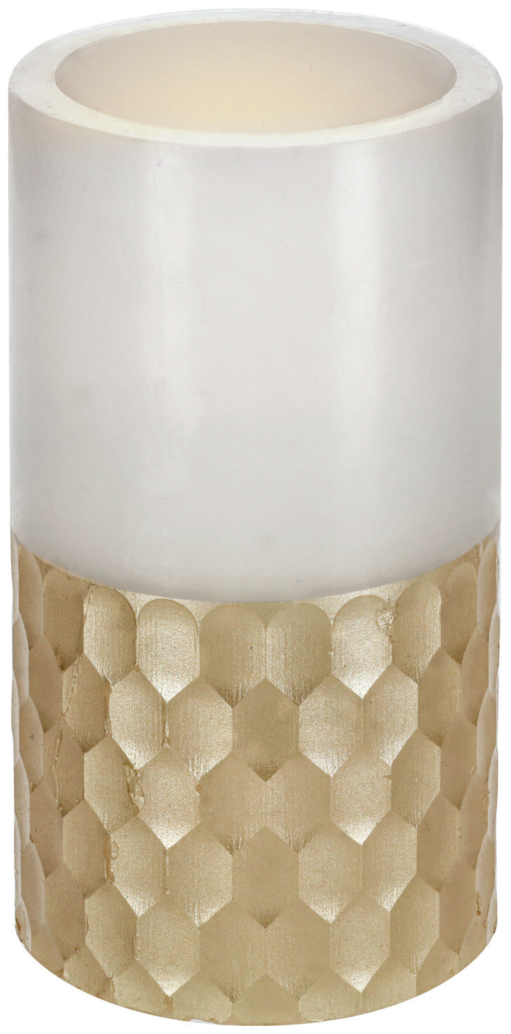 Lampka stołowa LED wykonana z prawdziwego wosku z elegancką złotą dekoracją. Z funkcją 6-godzinnego timera. Nie zawiera baterii AA.
