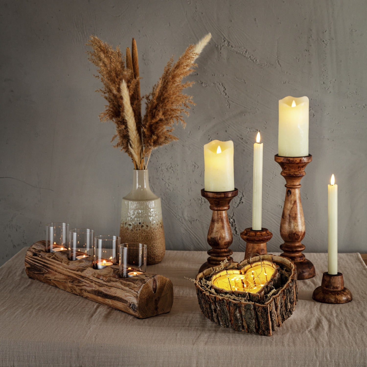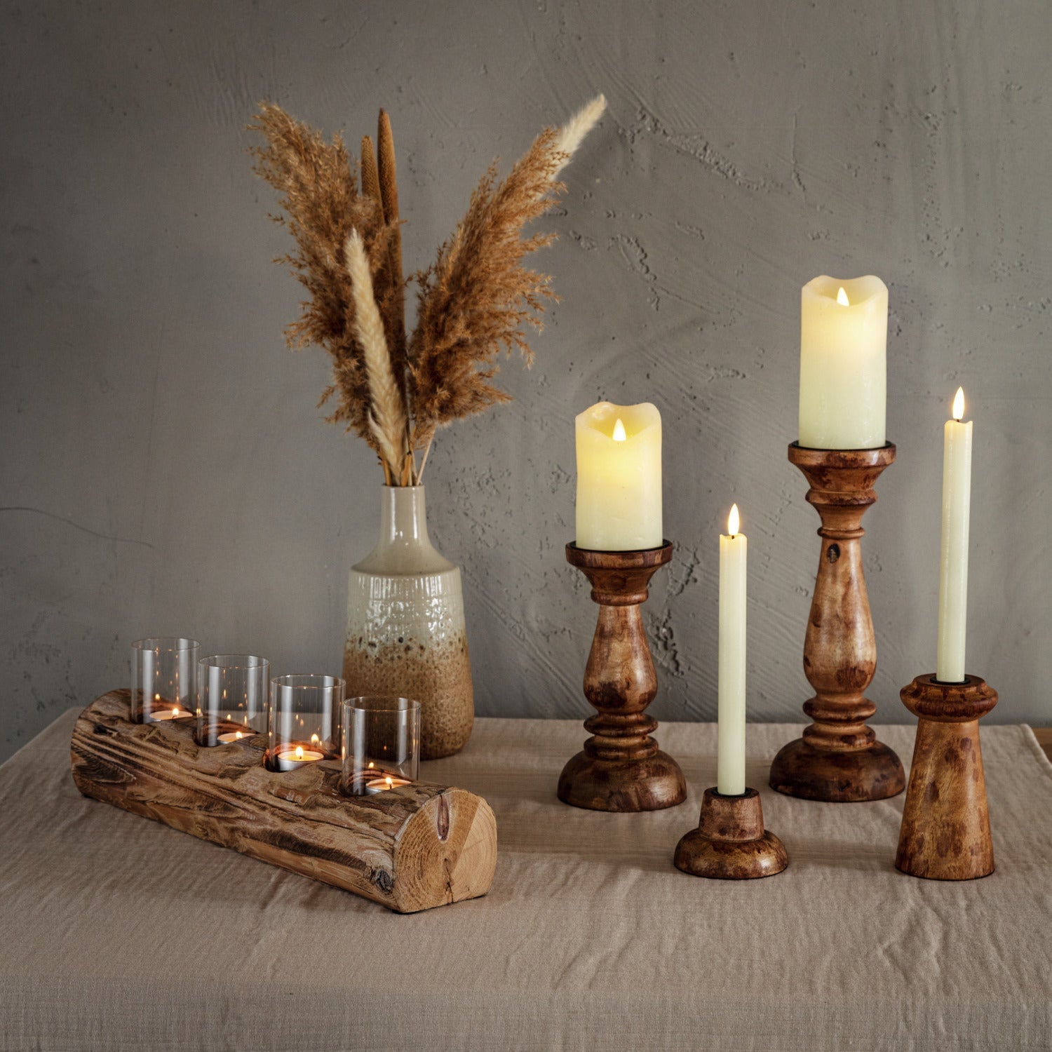 Świeczniki wykonane z naturalnego drewna. Każdy egzemplarz jest wyjątkowy.