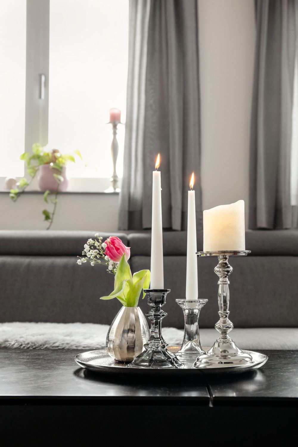 Świecznik w pięknym barokowym kształcie. Z dużą podstawą zapewniającą wysoką stabilność. Odpowiedni do świec stożkowych Chandel. Materiał: szkło w jednolitym kolorze. Można myć w zmywarce!