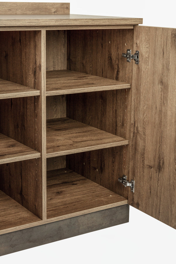 Stacja do serwowania Baristo Basic to idealny mebel do restauracji, kawiarni, piekarni lub obszarów biznesowych, zarówno jako samoobsługowa stacja kawowa, jak i punkt do serwowania w cateringu. Solidna powierzchnia do przechowywania zapewnia miejsce na profesjonalne ekspresy do kawy, systemy kasowe lub menu i wszystko, co musi być w zasięgu ręki. Maksymalne obciążenie powierzchni roboczej 80 kg. System Baristo Basic składa się z paneli drewnopochodnych. * Dostępne 2 różne wersje kolorystyczne * 2 szt. drzwi z wysokiej jakości zawiasami i dwiema półkami o regulowanej wysokości (maks. obciążenie 25 kg na półkę) * Nóżki do poziomowania podłogi * Tył z dekoracyjną powłoką do wolnostojącego ustawienia w pomieszczeniu * Dostarczana zmontowana * Nadaje się wyłącznie do użytku wewnątrz pomieszczeń