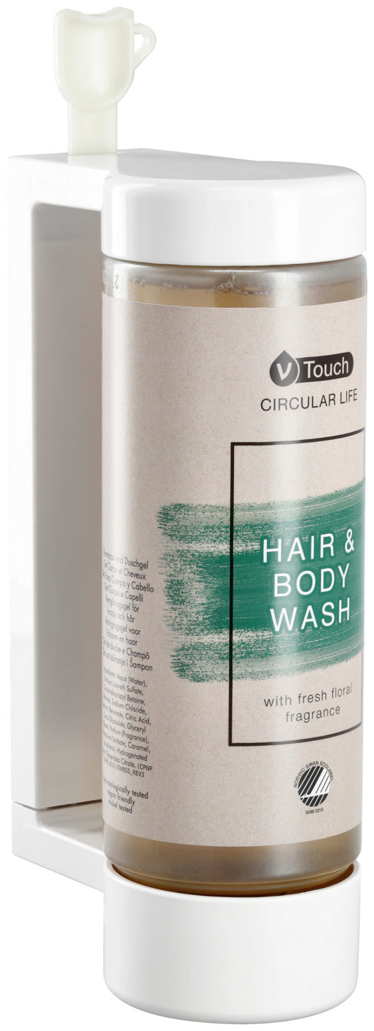 Zrównoważona, wysokiej jakości pielęgnacja włosów i ciała w jednym. Delikatnie oczyszczające mydło do włosów i ciała jest odpowiednie dla wszystkich rodzajów włosów i skóry. Odznaczone Ecolabel Nordic Swan. Świeży, kwiatowy zapach z drzewną nutą zapewnia delikatną i relaksującą pielęgnację. Testowane dermatologicznie, o neutralnym pH! System dozownika spełnia również wysokie standardy środowiskowe: zmniejsza ilość codziennych odpadów jednorazowego użytku. Wykorzystanie plastiku jest również znacznie ograniczone, ponieważ plastik jest bardzo lekki i w pełni nadaje się do recyklingu. Całe opakowanie nadaje się w 100% do recyklingu. Pojemność butelki z dozownikiem: 360 ml. Pasujący uchwyt należy zamówić osobno.