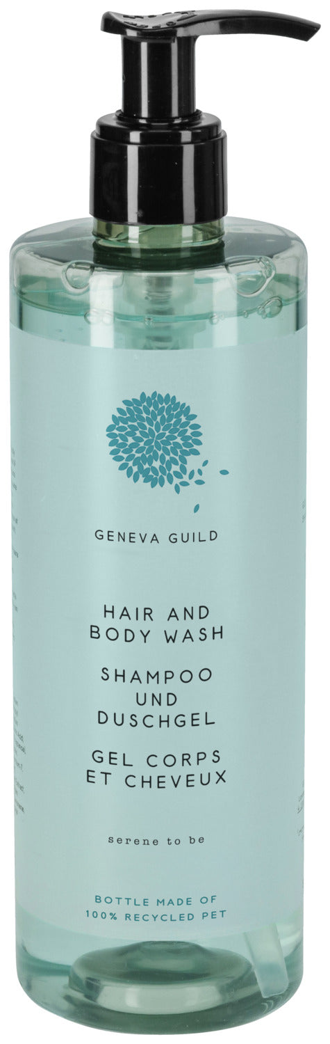 Łagodny szampon do włosów i żel pod prysznic Geneva Guild. Produkt pielęgnacyjny dwa w jednym, będący klasą samą w sobie. Delikatnie oczyszczający szampon i żel pod prysznic jest odpowiedni dla wszystkich rodzajów włosów i skóry. Wyśmienite niuanse zapachowe zapewniają uczucie świeżości i higieny. Wzbogacony ekstraktami z organicznego zielonego anyżu i melisy. Testowany dermatologicznie i o neutralnym pH! Praktyczny dozownik z pompką wykonany z rPET można łatwo i elastycznie uzupełniać. Całe opakowanie nadaje się w 100% do recyklingu. Pojemność butelki z pompką: 380 ml. Pasujący uchwyt należy zamówić osobno