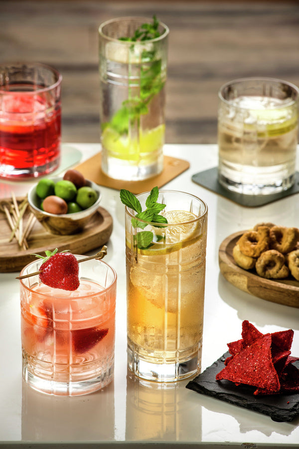 Szklanka do long drinków wykonana ze szkła kryształowego z reliefem na zewnątrz. Można myć w zmywarce.