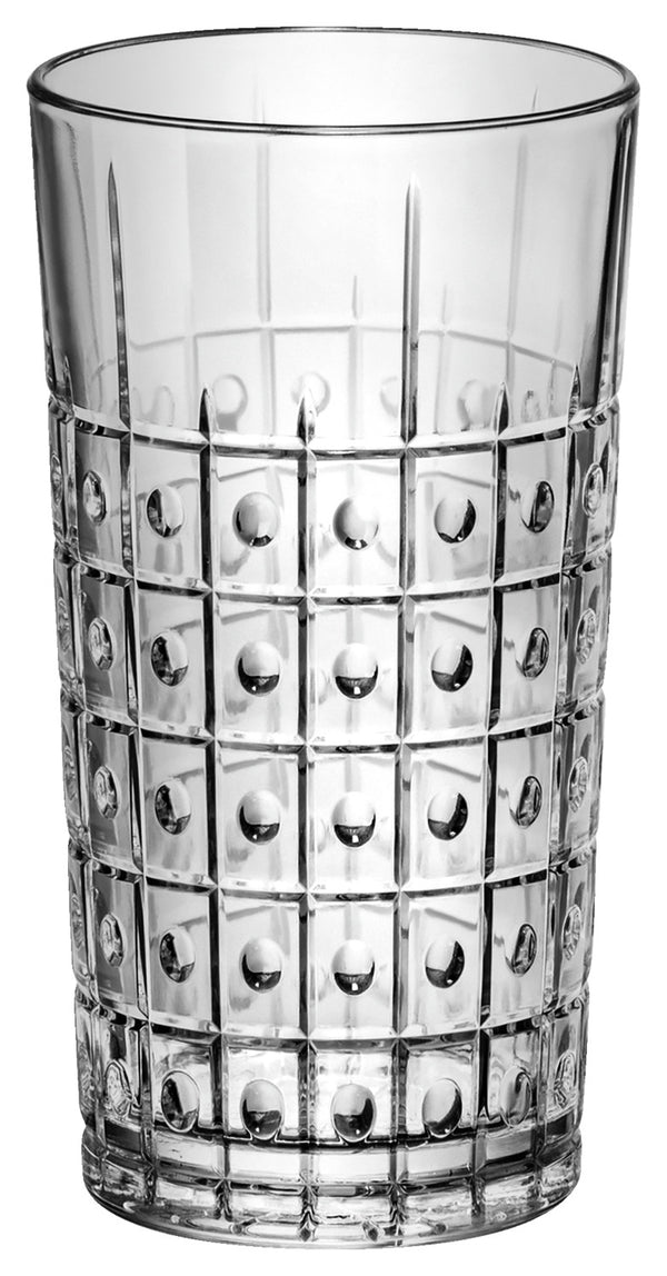 Szklanka do long drinków z piękną fakturą na zewnątrz. Można myć w zmywarce.