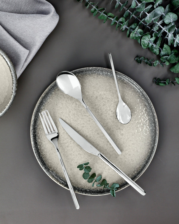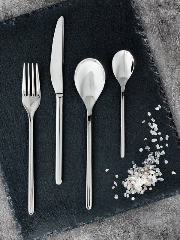 Stal nierdzewna chromowo-niklowa 18/10, odporna na rdzę. Nowoczesny widelczyk do ciasta ze smukłym, delikatnym uchwytem. Polerowany na wysoki połysk. Grubość materiału 7 mm (mierzona w najgrubszym punkcie widelczyka). Można myć w zmywarce.