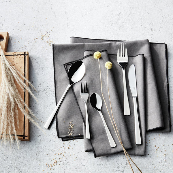 Stal nierdzewna chromoniklowa 18/10. Widelec do przystawek/deserów o prostym, neutralnym designie. Wypolerowany na wysoki połysk. Grubość materiału 3 mm odpowiednia dla gastronomii (mierzona w najmocniejszym miejscu widelca obiadowego). Można myć w zmywarce.