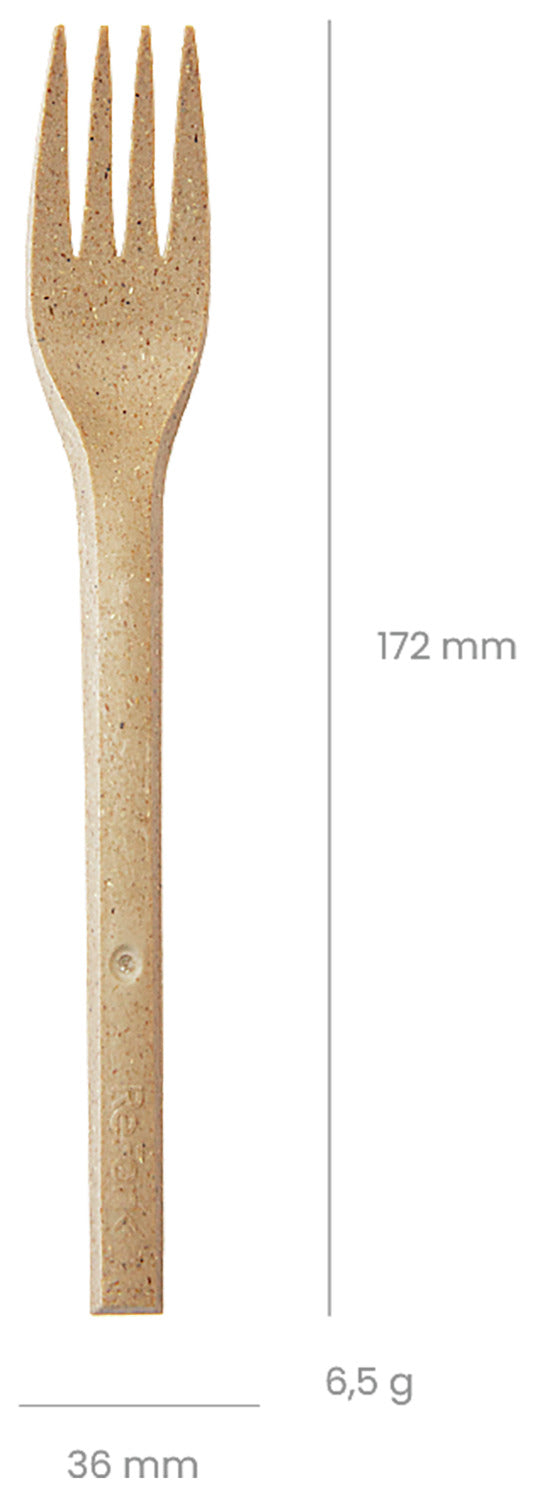 Widelec wielokrotnego użytku wykonany z mączki drzewnej (trocin) z dodatkiem naturalnych polimerów i minerałów. W pełni biodegradowalny. Nie pozostawia mikroplastiku. Wytrzymałe sztućce imprezowe, idealne do obsługi imprez w gastronomii i cateringu. Bezpieczne dla żywności, bezzapachowe i bezsmakowe. Przyjemniejsze w dotyku niż tradycyjne drewniane sztućce. Można myć ręcznie i używać ponownie po użyciu. Bezodpryskowe dzięki czystej obróbce krawędzi. Odpowiednie do gorących potraw - widelec do maks. +100°C. Odporne na wysoką temperaturę.