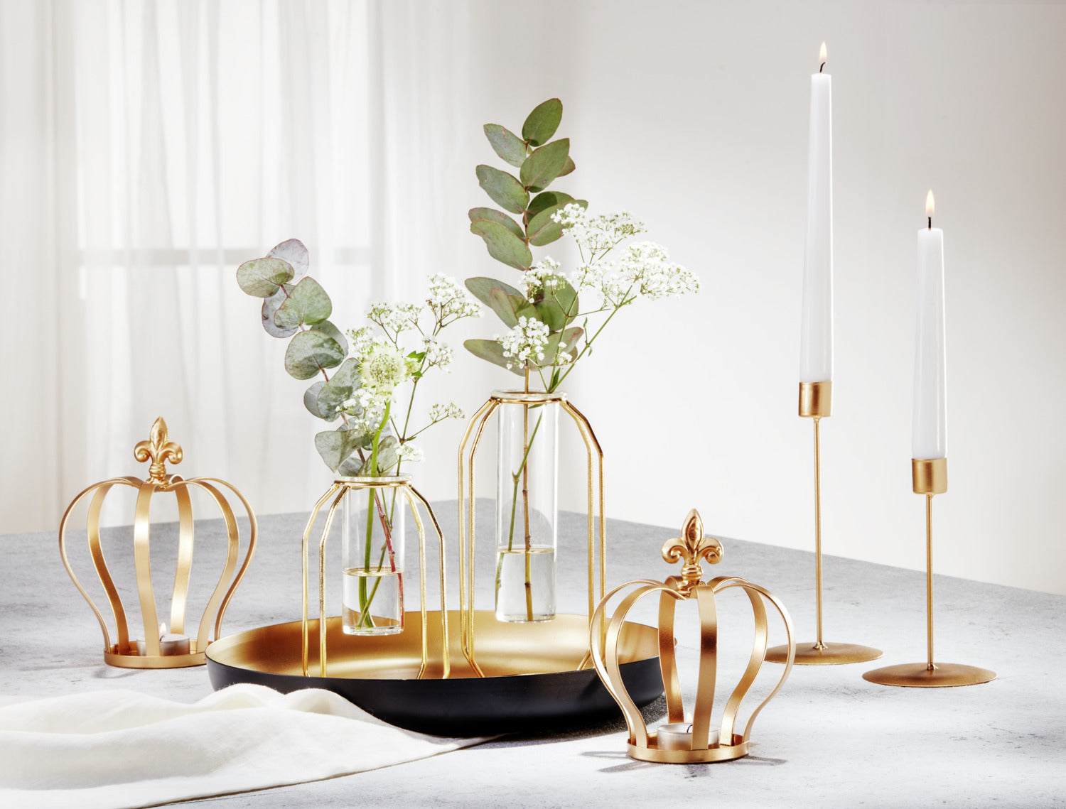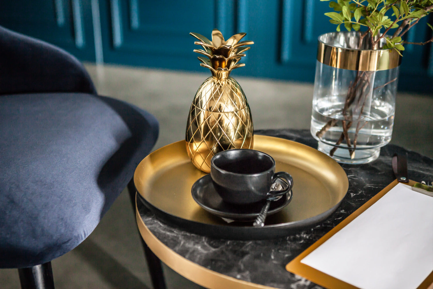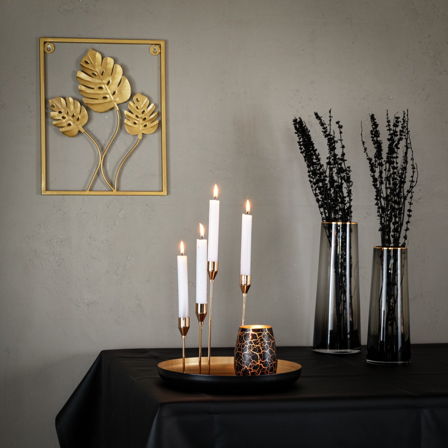 Taca dekoracyjna wykonana z lakierowanego metalu. Nie nadaje się do kontaktu z żywnością. Przed pierwszym użyciem należy przetrzeć wilgotną szmatką.