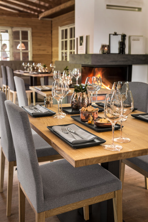 Modny talerz wykonany z porcelany z matowym czarnym szkliwem, imitujący ceramikę. Można myć w zmywarce i używać w kuchence mikrofalowej.