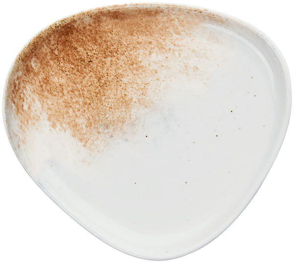 Kolorowy talerz porcelanowy o nieregularnym, organicznym kształcie. Dostępny w różnych odcieniach. Można myć w zmywarce i używać w kuchence mikrofalowej.