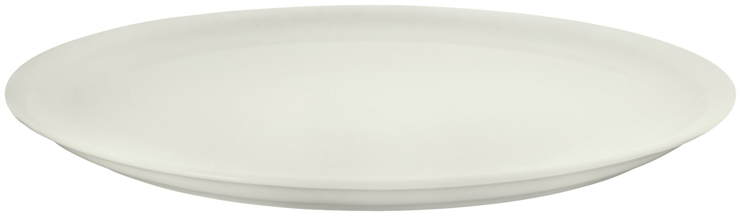 Porcelanowy talerz do pizzy o lekko kremowym kolorze. Wysoka odporność. Wspaniałe szkliwo. Można myć w zmywarce i używać w kuchence mikrofalowej.