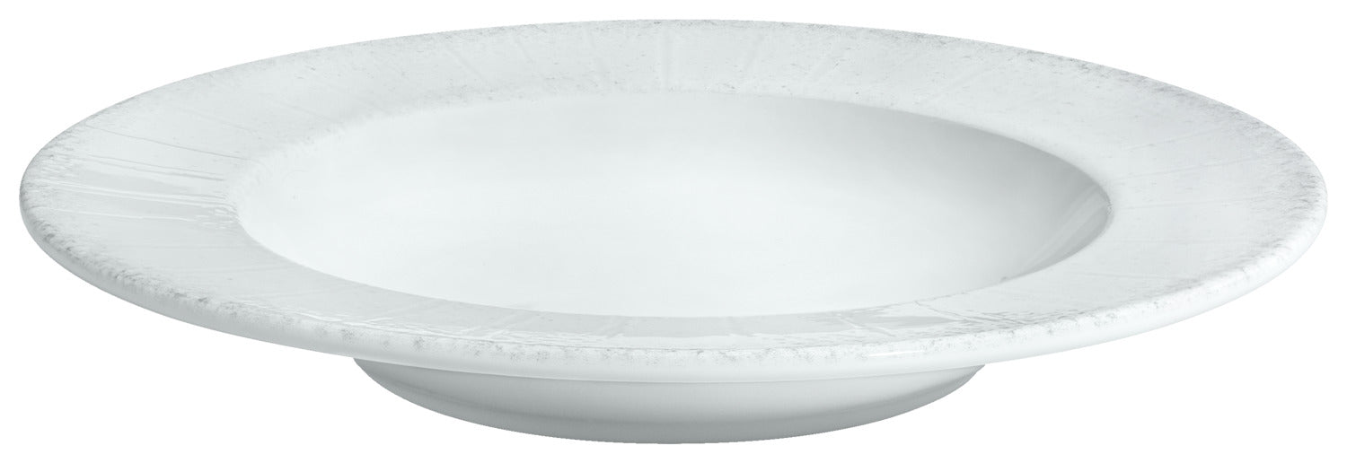 Kolorowy porcelanowy talerz z rantem ozdobiony nadrukiem cyfrowym. Można myć w zmywarce i używać w kuchence mikrofalowej.