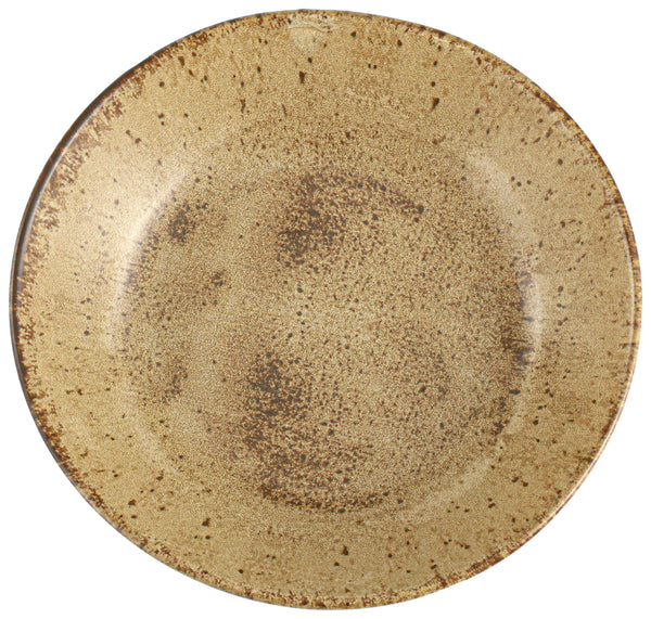 Talerz z kolorowej kamionki wykończony matową glazurą, z nieregularną krawędzią. Można myć w zmywarce i używać w kuchence mikrofalowej.