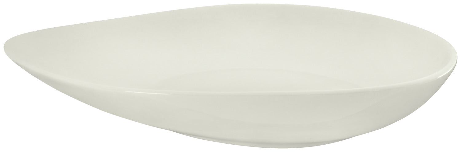 Porcelanowy talerz głęboki o lekko kremowym kolorze. Nowoczesny design w organicznym kształcie. Wysoka odporność. Wspaniałe szkliwo. Można myć w zmywarce i używać w kuchence mikrofalowej.