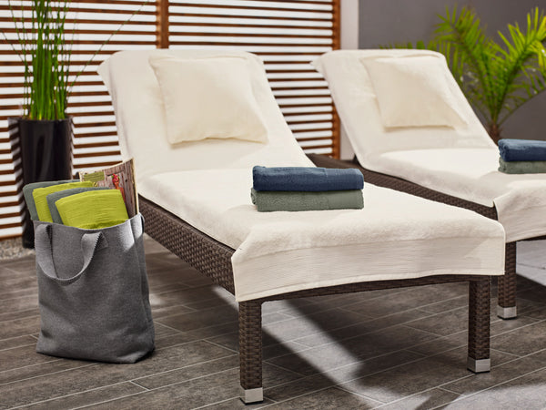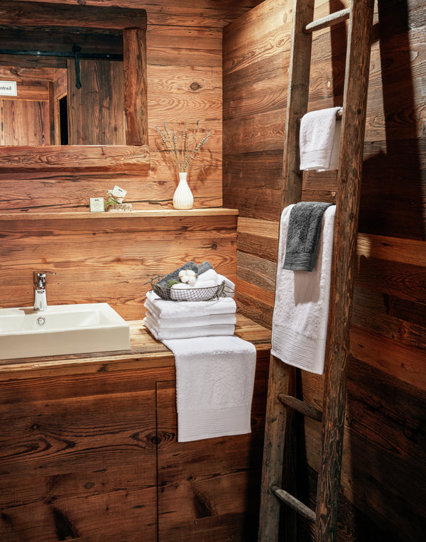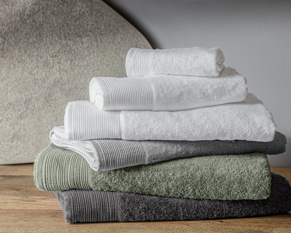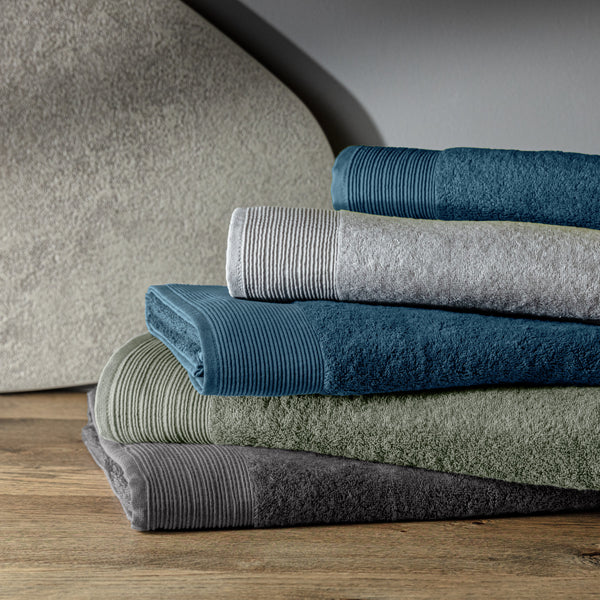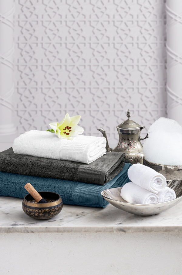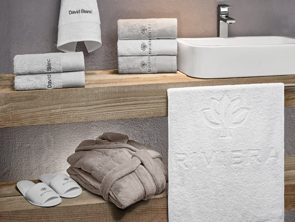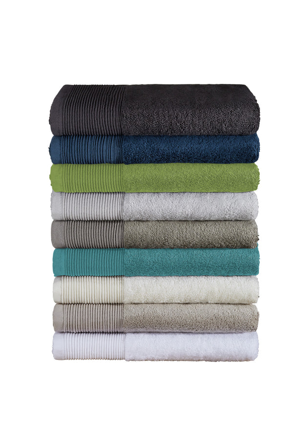 60% bawełna, 40% wiskoza (włókno bambusowe). Gramatura ok. 600 g/m². Ręcznik kąpielowy frotte o jedwabistym połysku i aksamitnym dotyku. Bordiura w tkanej strukturze. Włókno wiskozowe pozyskiwane z bambusa jest bardziej chłonne niż tradycyjna bawełna. Możliwość personalizacji.