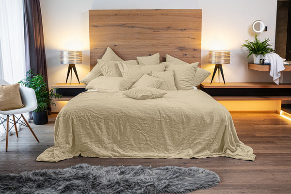 55% len, 45% bawełna. Gramatura ok. 135 g/m². Sprzedawana na metry tkanina o gniecionej strukturze. Maksymalna długość belki wynosi 30 metrów i można ją przyciąć do pożądanego rozmiaru.
