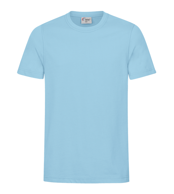 Wyjątkowo trwały t-shirt z okrągłym dekoltem, który pasuje zarówno kobietom, jak i mężczyznom. Wykonany z wysokiej jakości mieszanki 50% bawełny i 50% poliestru, charakteryzuje się wagą około 180g/m², dzięki czemu jest bardziej wytrzymały, lepiej odporny na plamy, a także mniej gniecący się niż t-shirt bawełniany.