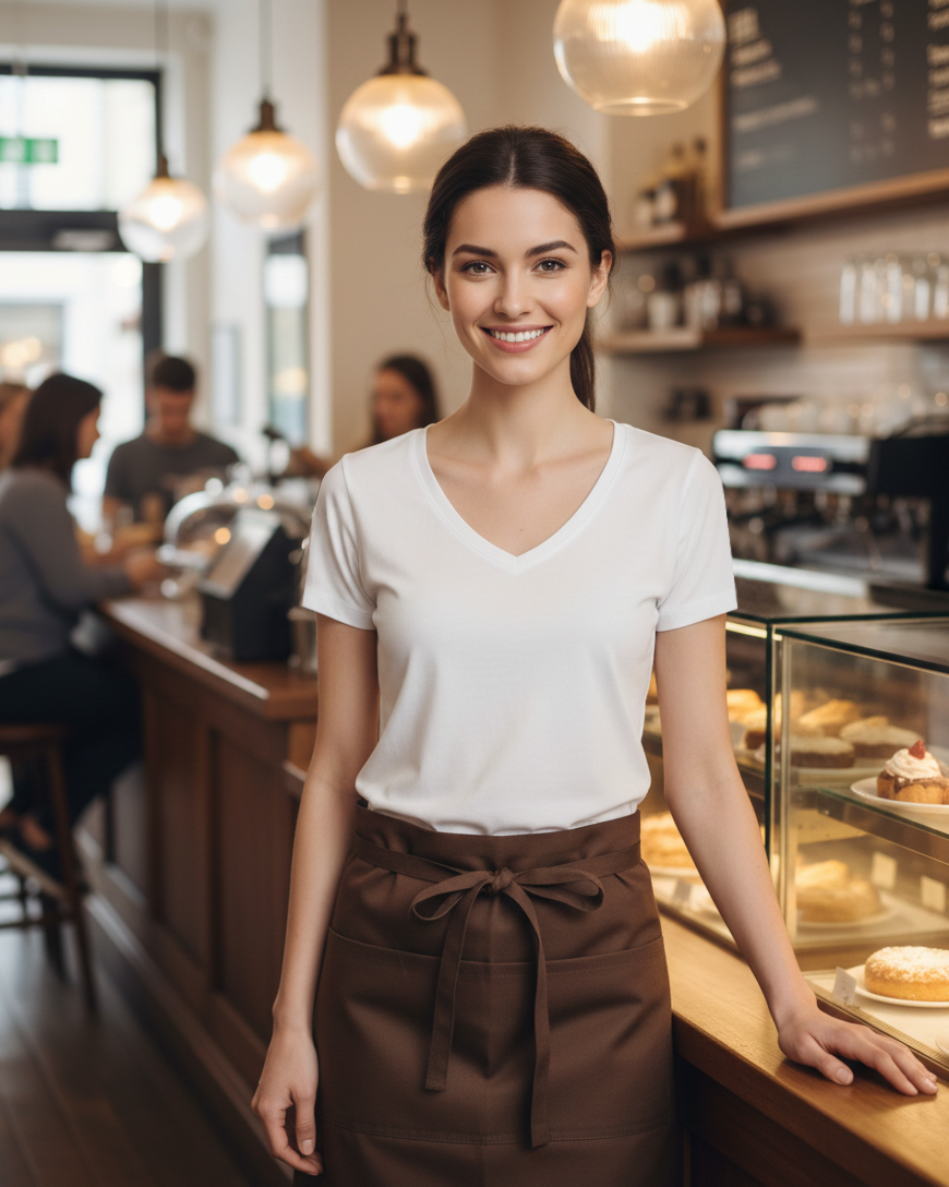 Wygodny t-shirt damski o dekolcie w kształcie litery V. Koszulkę wyróżnia miękki i gładki materiał single jersey. Dodatkowo, t-shirt posiada elastyczny ściągacz, taśmę wzmacniającą na ramionach i podwójne szwy. Idealny wybór do gastronomii, SPA oraz houskeepingu. Dostępny w czterech praktycznych i ponadczasowych kolorach.