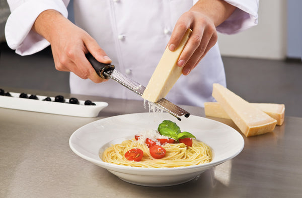 Tarka zester wykonana ze stali nierdzewnej chromowo-niklowej 18/10. Gumowy uchwyt, ergonomiczny, przyjemnie miękki. Ostre jak brzytwa ostrze. Można myć w zmywarce. Dostarczana z pokrowcem ochronnym wielokrotnego użytku.