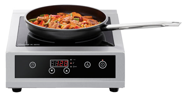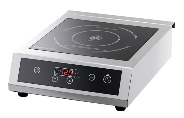 Mobilna płyta indukcyjna ze szklaną powierzchnią do gotowania z obudową ze stali nierdzewnej. Z dotykowym panelem sterowania i cyfrowym wyświetlaczem timera. Średnica płyty wynosi 228 mm. Urządzenie ma dziesięć poziomów mocy (500-3500 W) i dziesięciostopniowe ustawienie temperatury. Zakres temperatur: od 60 °C do 240 °C. Elektroniczne zabezpieczenie przed przegrzaniem. Dwuletnia gwarancja.
