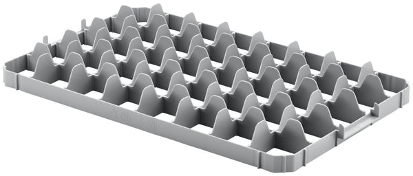 Polietylenowy wkład półkowy do systemów transportowych. Z 40 przegródkami. Idealny do transportu szklanek o maksymalnej wysokości 6,7 cm, również z uchwytem w zależności od rozmiaru. Ta górna część zabezpiecza szklanki, zatrzaskując się we wgłębieniu uchwytu z boku skrzynki. Można myć w zmywarce.