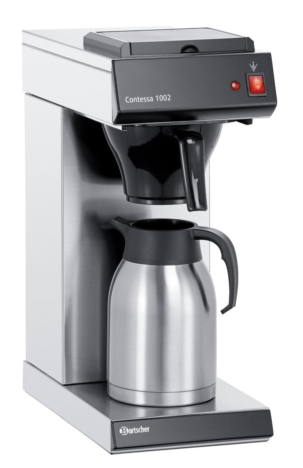 Obudowa ekspresu do kawy wykonana ze stali nierdzewnej chromowo-niklowej 18/10. Kosz filtra wykonany z tworzywa sztucznego. Dwuścienny izolowany dzbanek wykonany z matowej stali nierdzewnej chromowo-niklowej 18/0, z plastikową górną częścią i automatyczną obsługą jedną ręką, nie nadaje się do mycia w zmywarce. Nadaje się do pracy ciągłej. Z włącznikiem/wyłącznikiem ekspresu do kawy i kontrolką nagrzewania. Czas parzenia na dzbanek ok. 8 minut. Minimalna objętość parzenia 0,5 litra. W zestawie dzbanek termiczny. Dwuletnia gwarancja. Podłączone obciążenie: 2 kW/230 V; pojemność dzbanka: 2 litry; ØxH dzbanka cm: 14x25; pojemność godzinowa: ok. 16 litrów; waga: 6,8 kg.