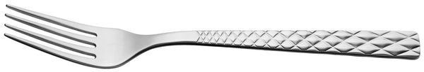 Stal nierdzewna chromoniklowa 18/10. Nowoczesny widelec do przystawek/deserów z reliefem w kształcie rombu w okolicy rękojeści. Wypolerowany na wysoki połysk. Grubość materiału 4,5 mm odpowiednia dla gastronomii (mierzona w najmocniejszym miejscu widelca obiadowego). Można myć w zmywarce.