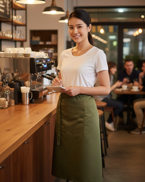 - Zapaska Happy – to nasz autorski projekt, który przeznaczony jest zarówno dla kobiet, jak i mężczyzn. Klasyczny krój, a także długość za kolano sprawiają, że zapaska doskonale pasować będzie niemal w każdym lokalu gastronomicznym. Regulowane wiązanie w pasie pozwala na jej dopasowanie do potrzeb pracownika. Zapaska kucharska czarna jest najbardziej popularną propozycją dla pracowników eleganckich restauracji. Dostępna także w dwóch innych kolorach – bordowy, zielony – a także w wersji prążkowanej.