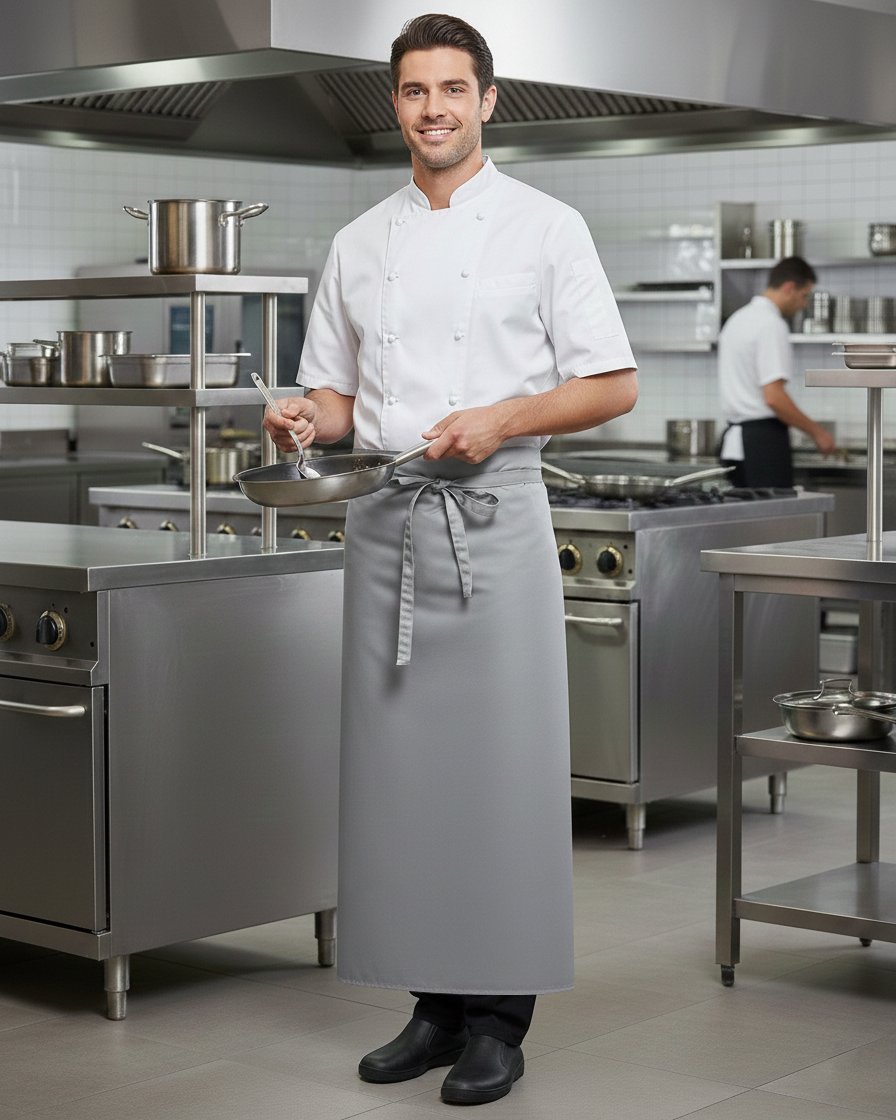 Zapaska bez kieszeni, dostępna w wielu rozmiarach. Zapaska wyróżnia się trwałym kolorem, małą gniotliwością, łatwością pielęgnacji i wytrzymałością na pranie w wysokich temperaturach. Wiązana w pasie za pomocą troków z tkaniny zasadniczej. Wymiary: 100 x 100 cm (szer. x dł.)