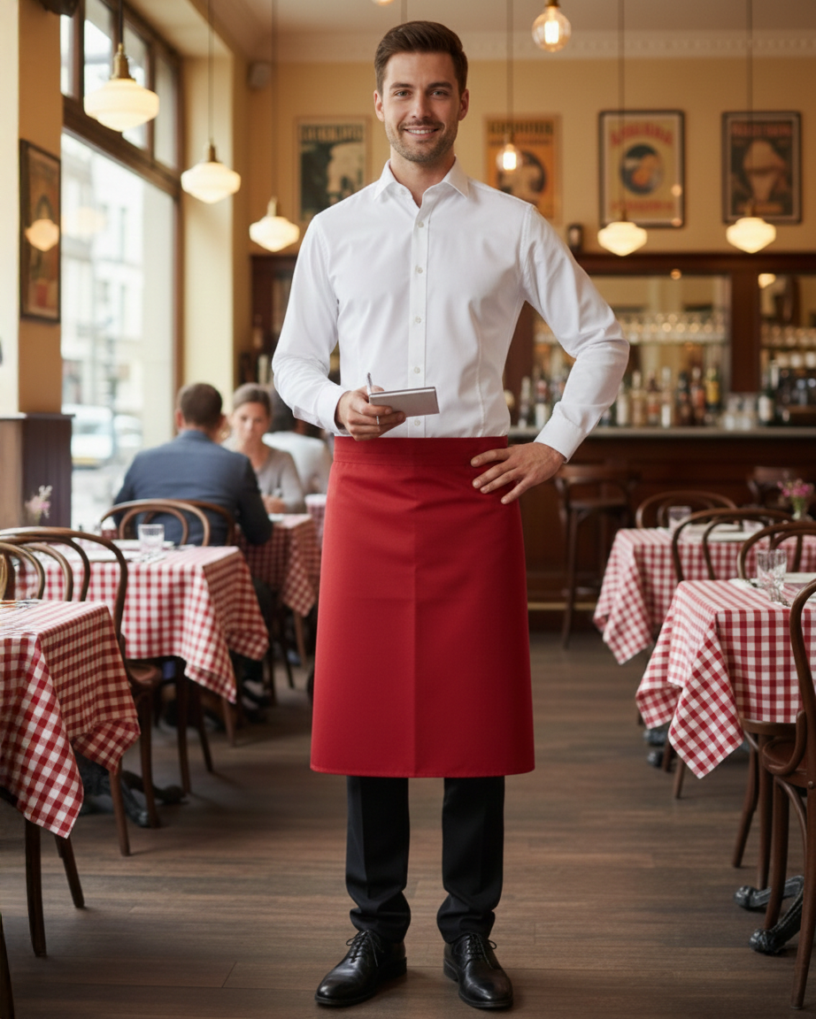Zapaska bez kieszeni, dostępna w wielu rozmiarach. Zapaska wyróżnia się trwałym kolorem, małą gniotliwością, łatwością pielęgnacji i wytrzymałością na pranie w wysokich temperaturach. Wiązana w pasie za pomocą troków z tkaniny zasadniczej. Wymiary: 100 x 80 cm (szer. x dł.)