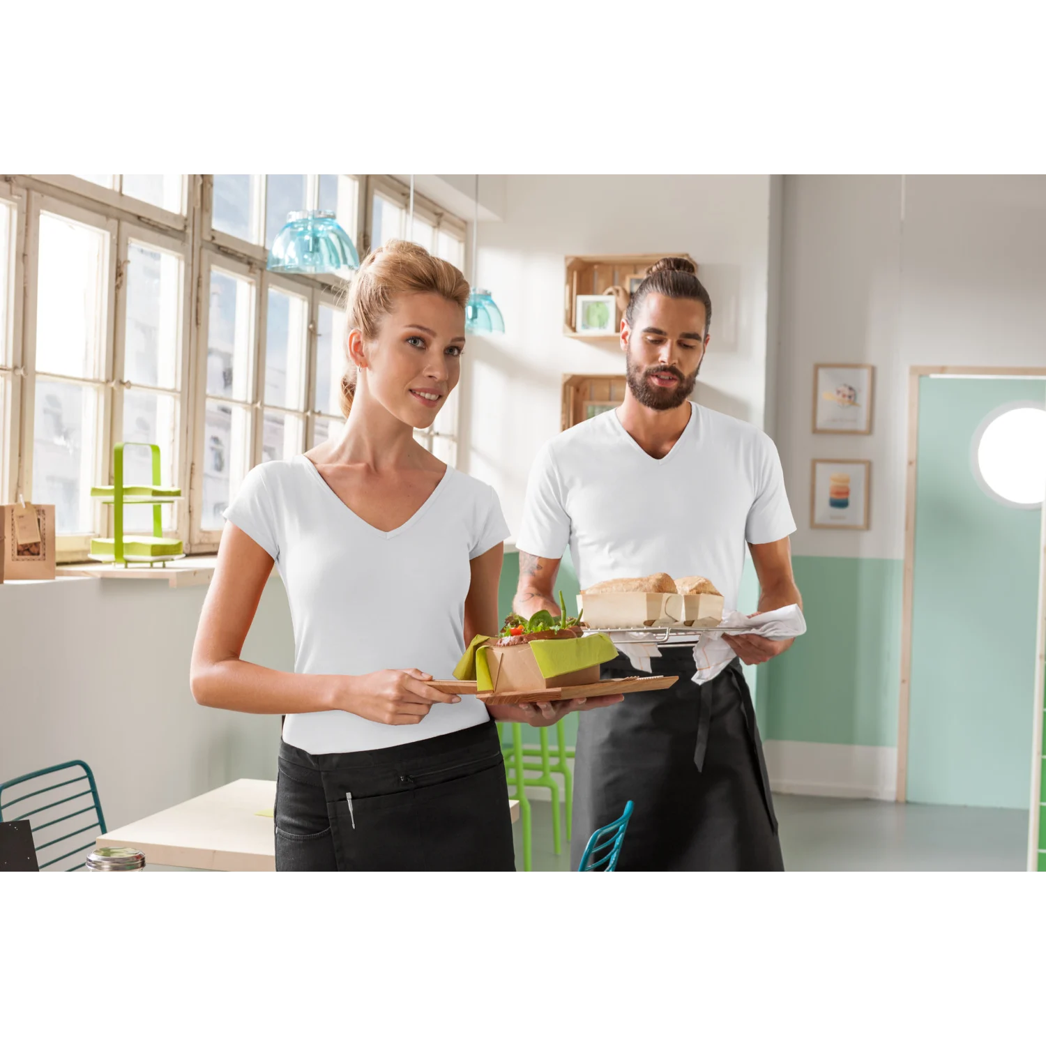 Modna krótka zapaska z trzema naszywanymi kieszeniami, jedną kieszenią na suwak i uniwersalną regulacją w pasie. Zapaska oferuje dużo miejsca do przechowywania i jest wszechstronna. 65% poliester, 35% bawełna. Pranie w 40°.