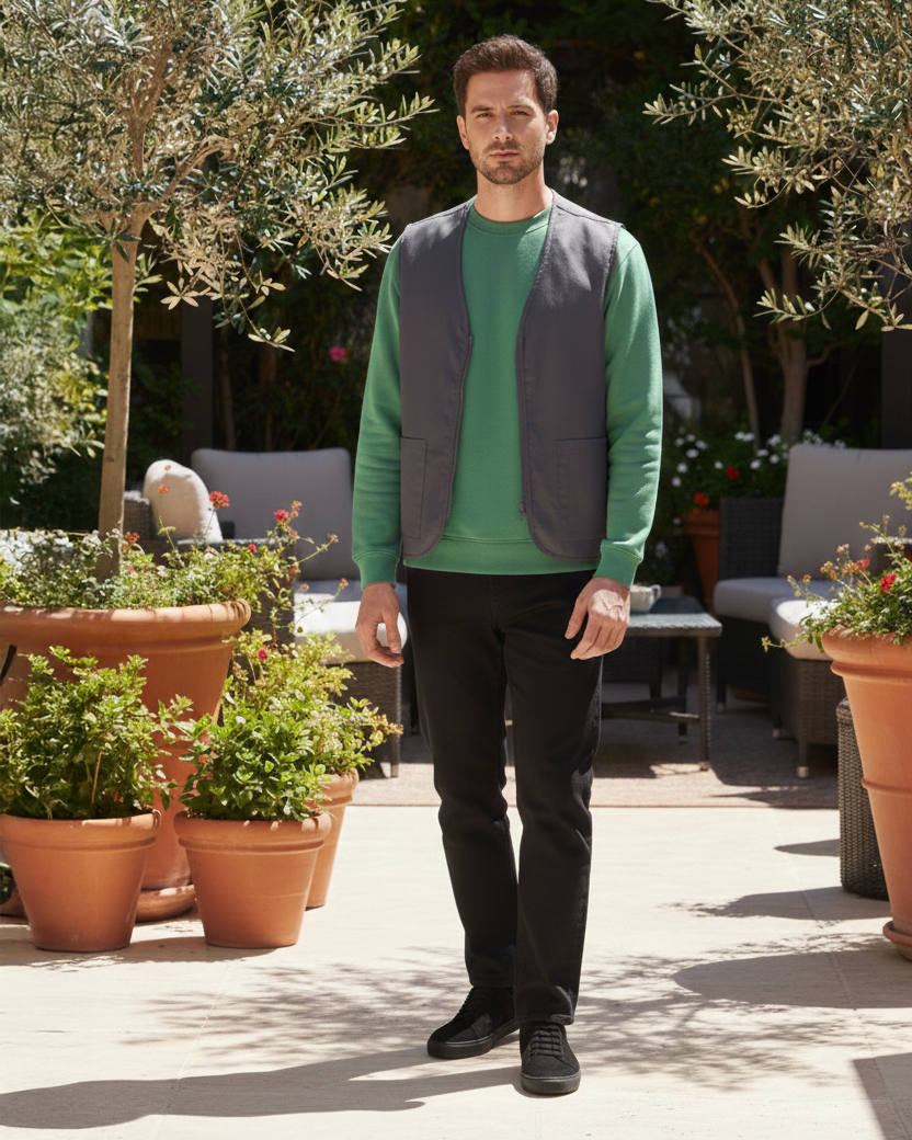 Kamizelka z tkaniny mieszanej, łatwa w pielęgnacji i niezastąpiona jako wierzchnia warstwa docieplająca w stylizacji warstwowej. Kamizelka o luźnym kroju nie krępuje ruchów i przyda się pracownikom technicznym, ogrodnikom, serwisom sprzątającym czy obsłudze gastronomii. Dwie naszywane kieszenie zewnętrzne oferują miejsce na akcesoria, a zapięcie na suwak zapewnia łatwą i szybką zmianę garderoby.