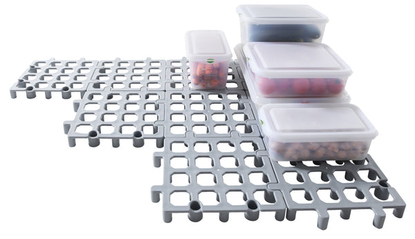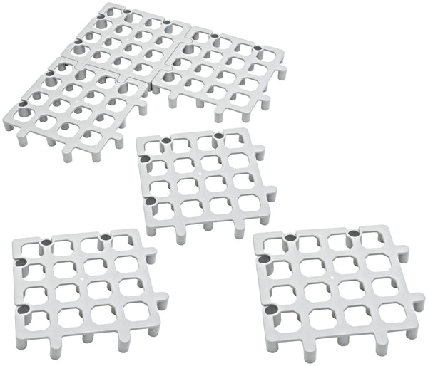 Kwadratowe kraty podłogowe wykonane z polipropylenu. Można je łączyć za pomocą systemu plug-in, tworząc powierzchnie o dowolnej wielkości. Otwory zapewniają cyrkulację powietrza, a jedzenie nie stoi na podłodze. Możliwość obciążenia do 1000 kg / m2. Zakres temperatur -15 °C do +80 °C.
