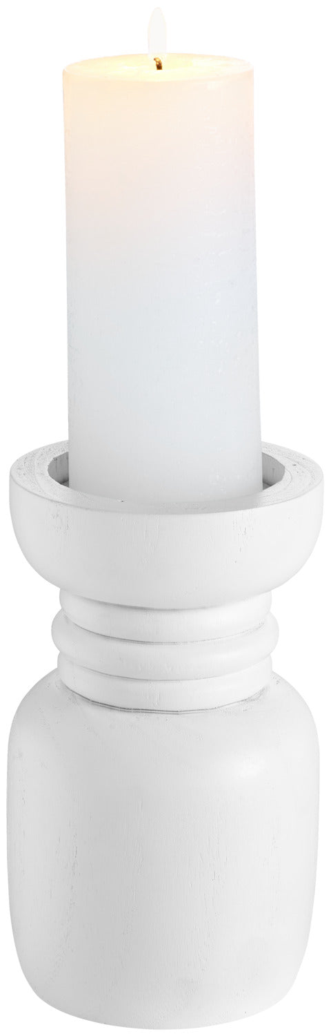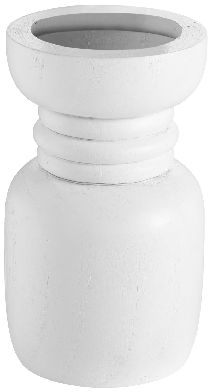 Świecznik Bigna w stylu skandynawskim o nietypowym kształcie, stanowi dyskretny akcent dekoracyjny. Maks. Ø świecy 7,6 cm. Materiał: drewno, lakierowane.